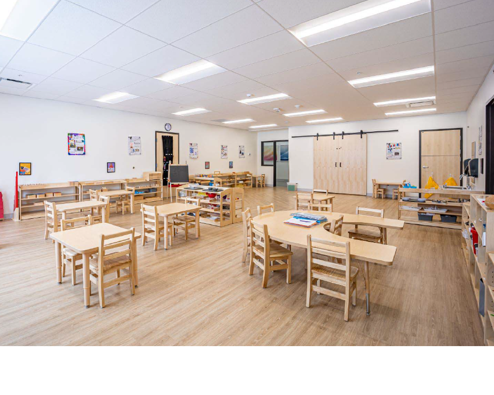 well-balanced early learning classroom featuring reading, art, and collaborative zones. Designed with child-height furniture, natural textures, and flexible layouts to support creativity, independence, and everyday engagement.